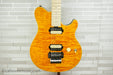 Engineered with the modern player in mind, the Sterling by Music Man Axis has become a go-to choice for contemporary rock and beyond. This model pairs eye-catching style with performance-driven design: a quilted maple top over a lightweight jabon body, matched with a hard maple neck and fingerboard that deliver a clear, punchy, and present tonal character. Dual alnico humbuckers and a 3-way selector provide a wide palette of usable tones across all 22 frets, while the asymmetrical neck and deep cutaway ensure effortless comfort and upper-fret access. A locking tremolo and supportive nut round out the build, offering expressive pitch control with stable, buzz-free performance.