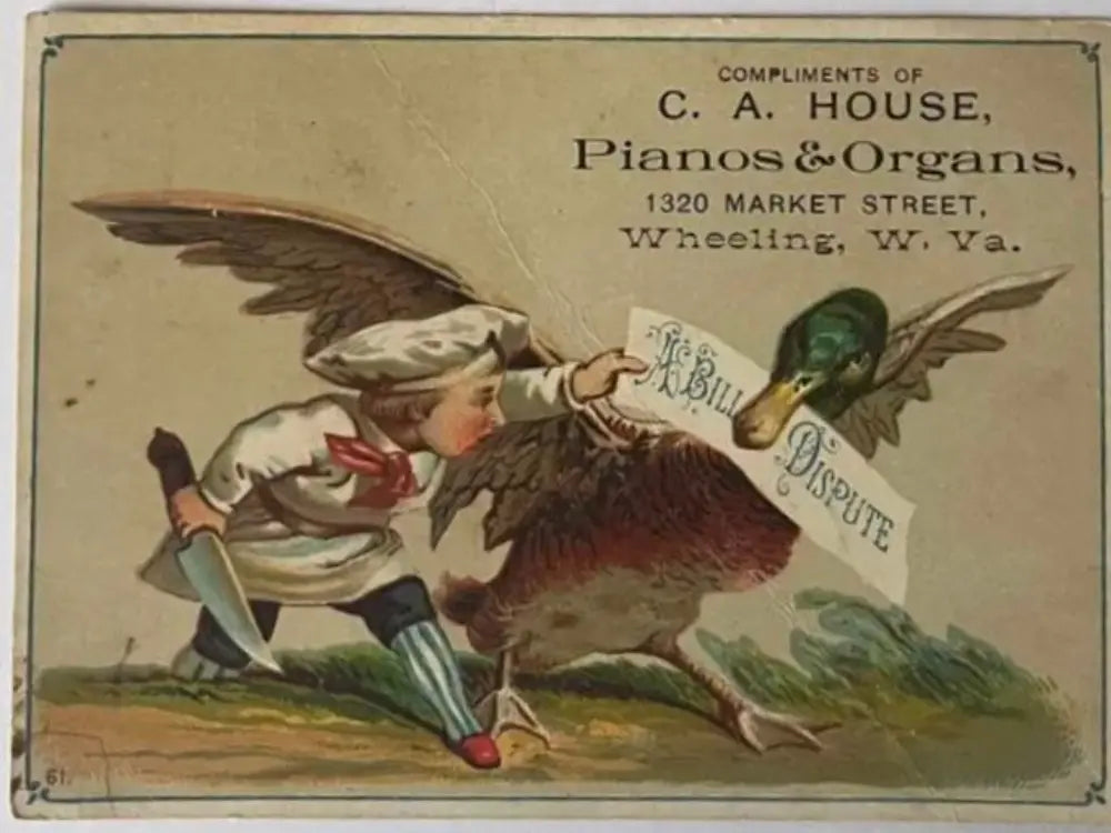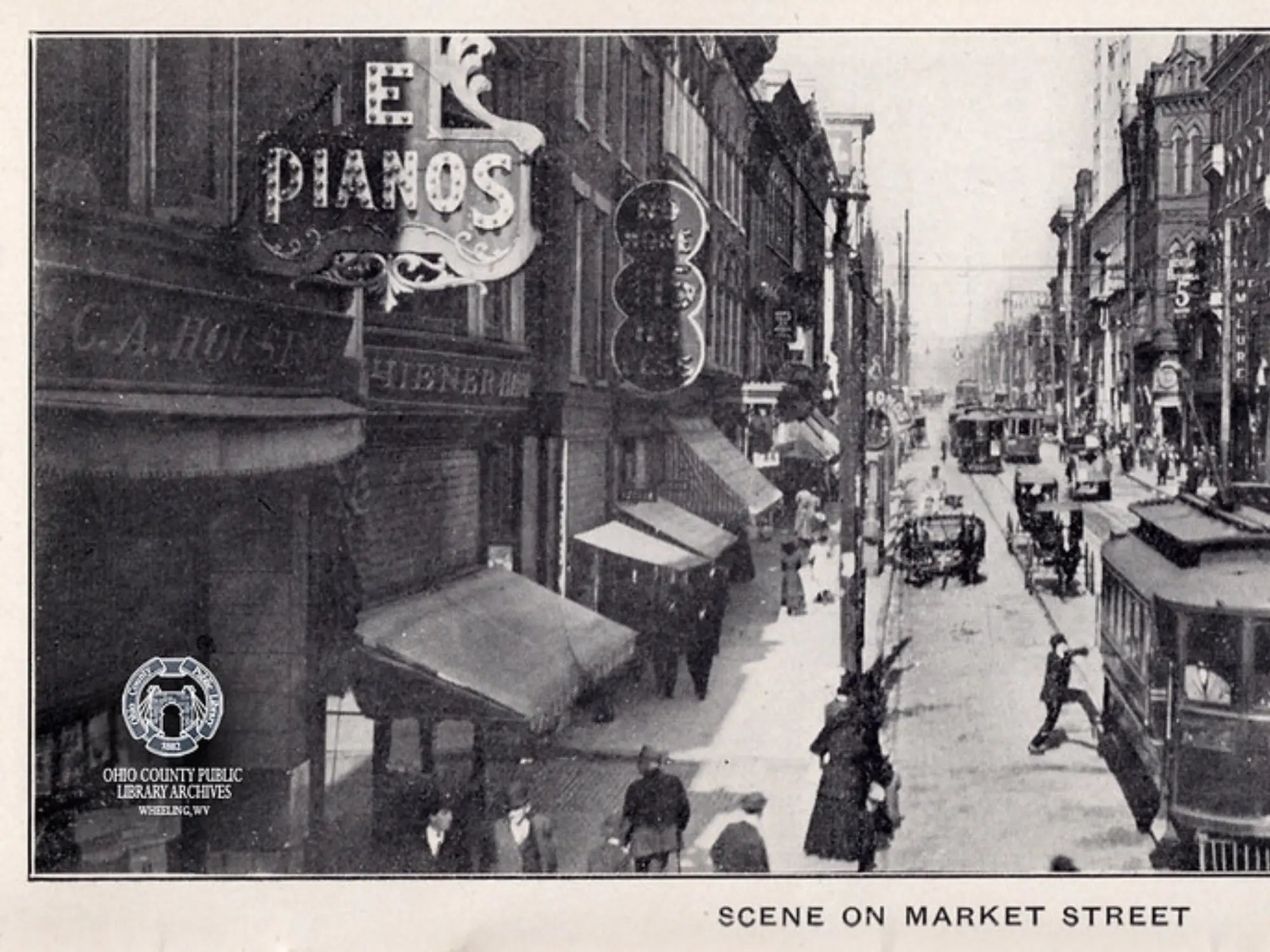 1872: Chauncey A. House founded C. A. House Music in Wheeling, WV, selling pianos and reed pump organs in a small shop on Market Street.